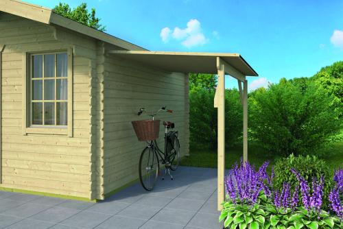Redskabsskur 34 mm Albacete Bjælkehytte 300x300x236cm + udhæng 70 cm