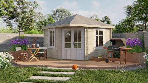 Havehus Nilsson 350x350cm Hjørnebjælkehytte Vægtykkelse 44 mm