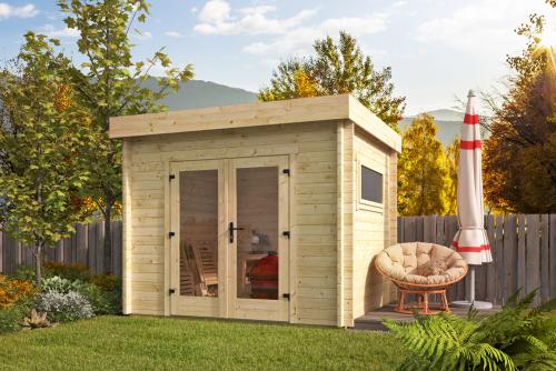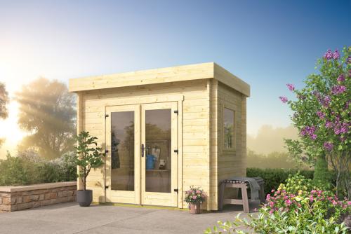 Bjælkehytte Minimoderne - Ubehandlet 300x200x223 cm med 28 mm