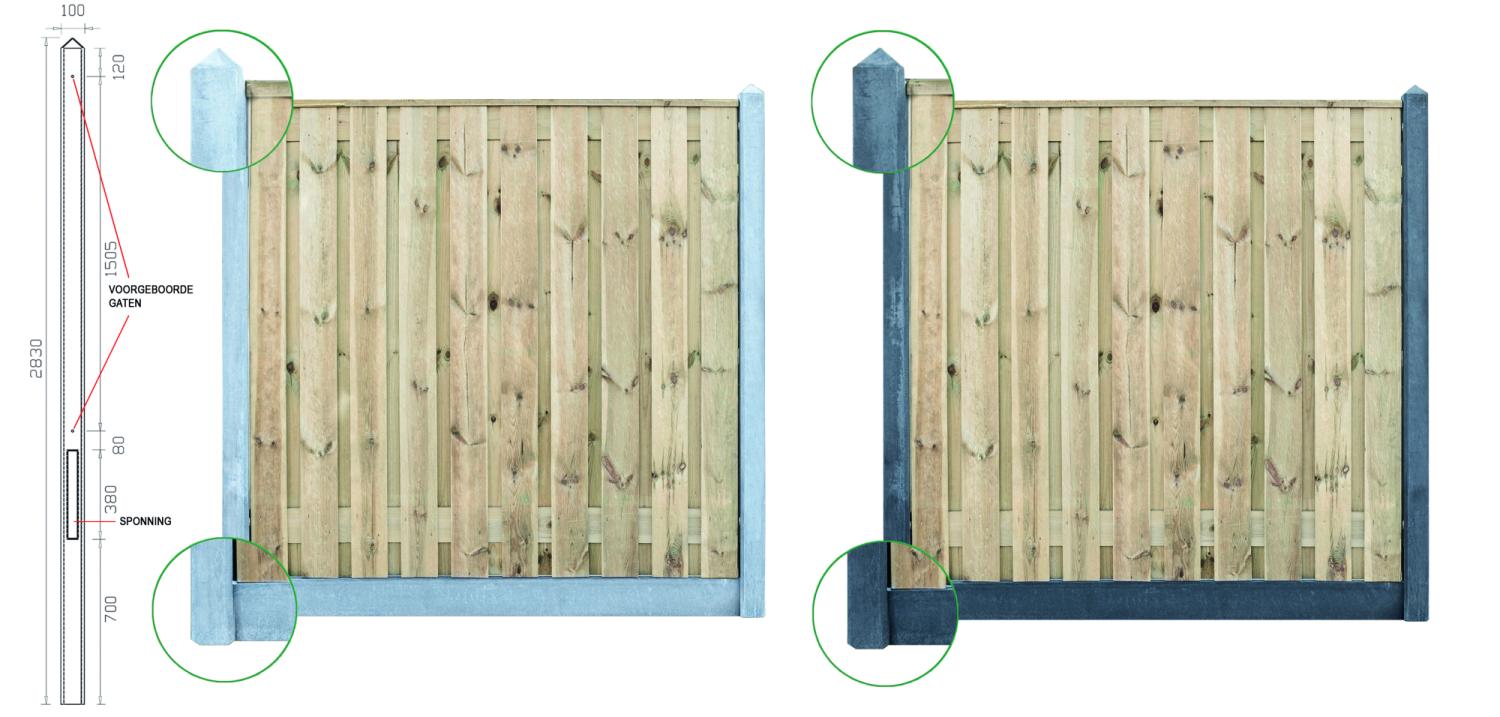 10x10x280 cm EL kabel Mellem Betonstolper Koks Grå IJssel passer til 180x180 hegn