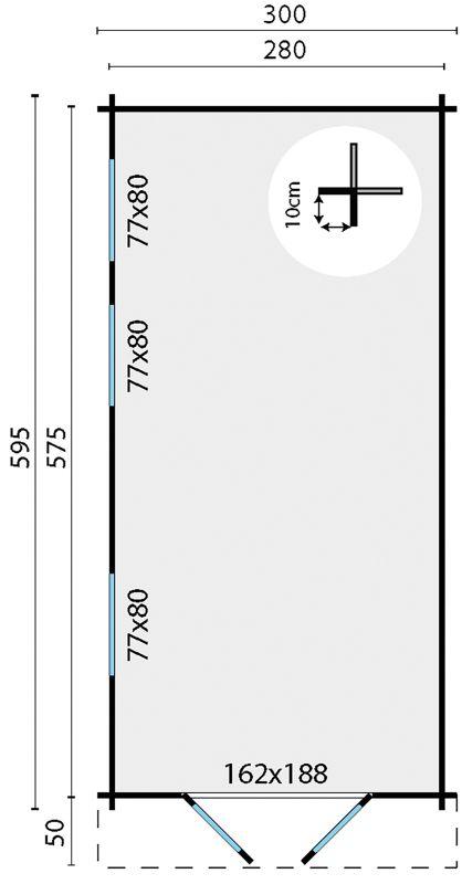 300x595 cm Havehus Rick 40 mm med dobbelt dør i Gavl