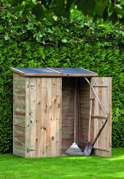 Bayern dobbeltdørs opbevaringsskur. Lavet af 16 mm trykbehandlet træ, så du kan være sikker på års brug. Den måler 153 cm bred x 73 cm dyb og 187 cm på sit højeste punkt.