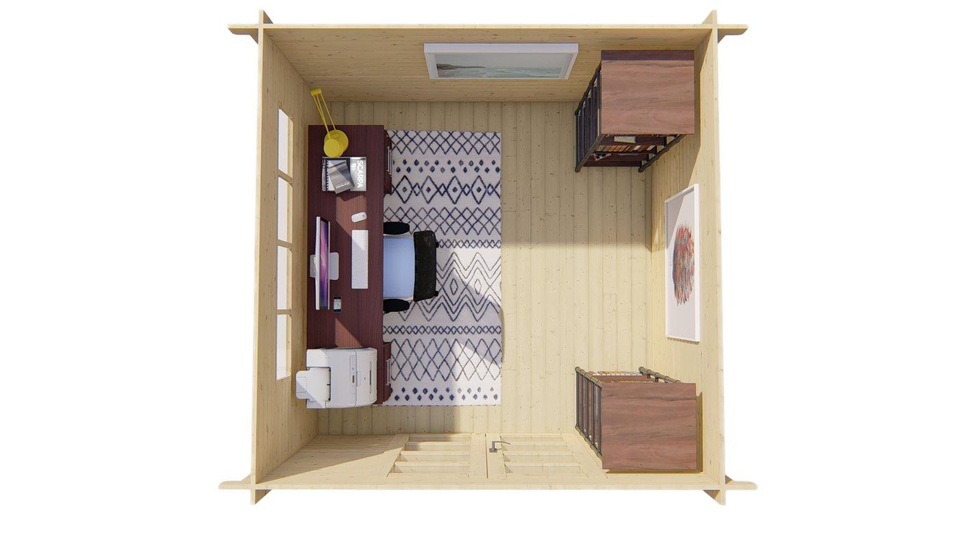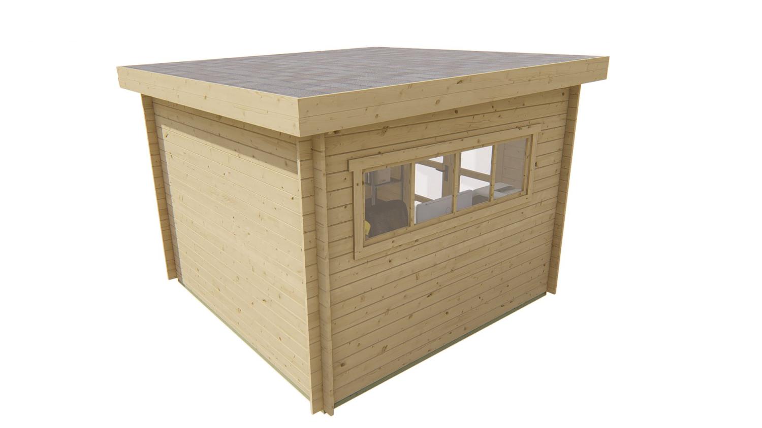Bjælkehytte Minimoderne - Ubehandlet 300x200x223 cm med 28 mm