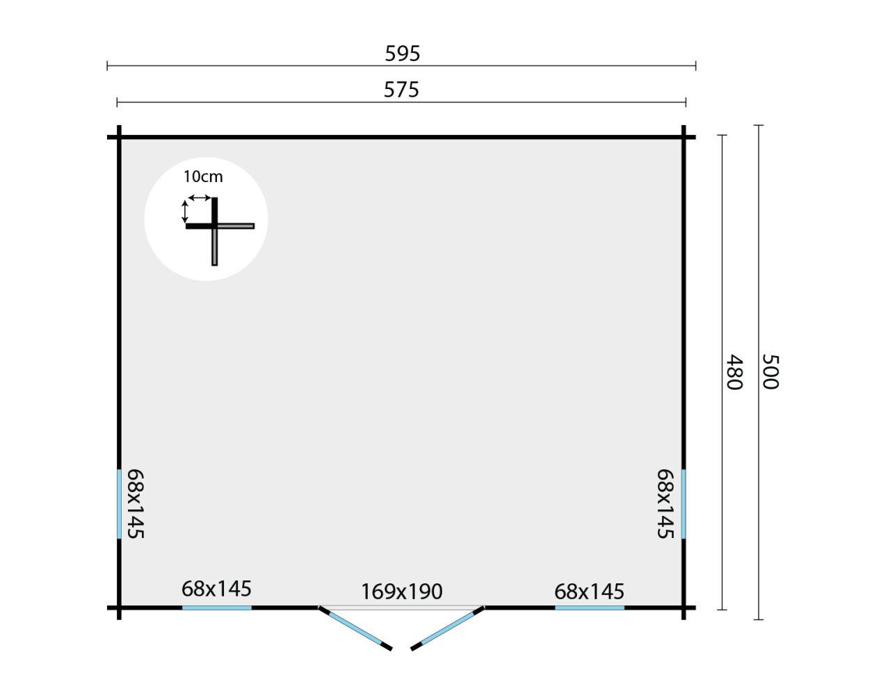 Havehus 28 mm Gran – 362 x 242 cm – 8,8 m² – Ubehandlet træhus med dobbeltdør PETER-HOLMBERG