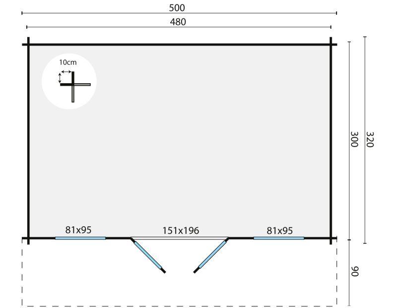 Bjælkehytte Havehus 500 x 320 cm Rika 44 mm