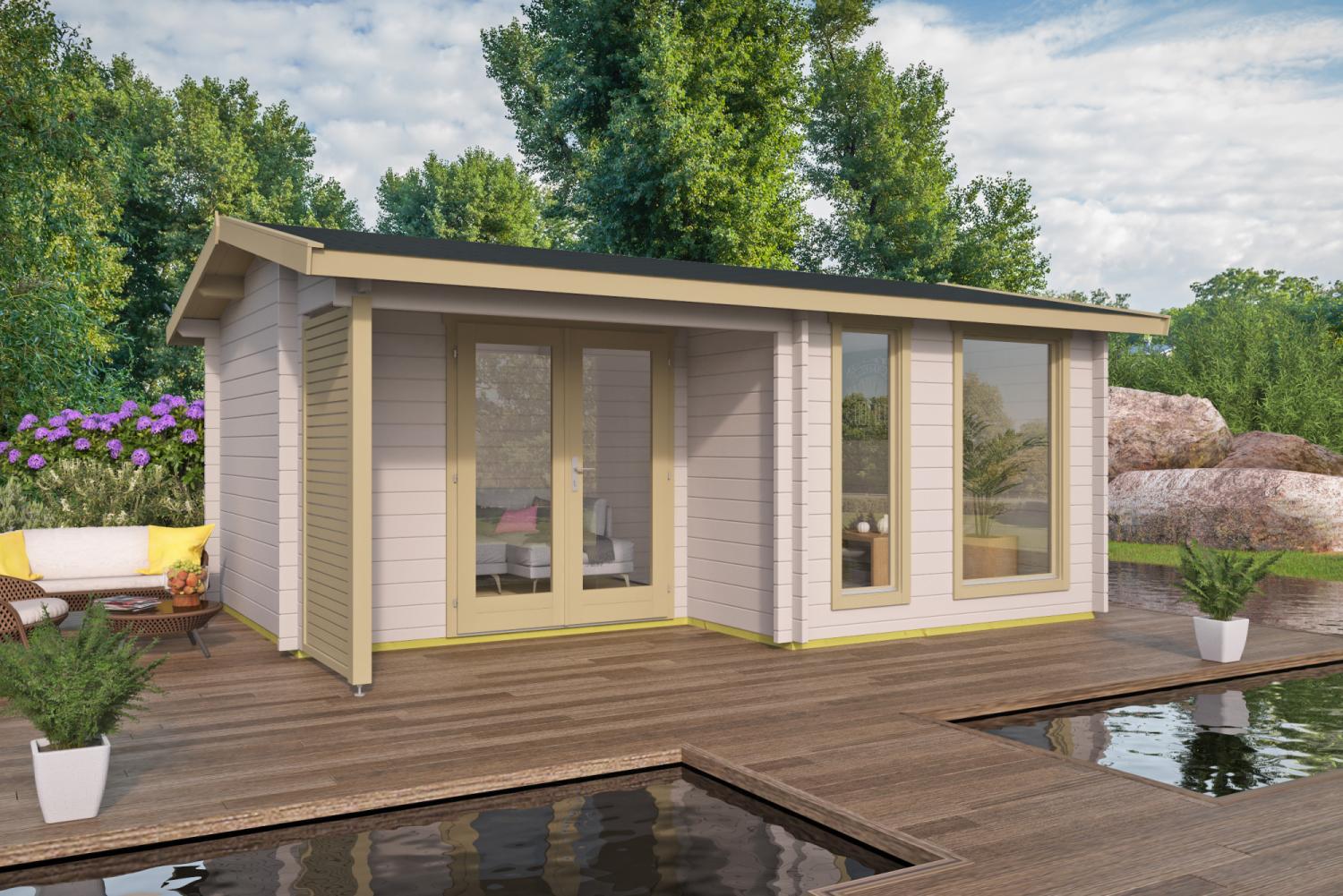 Hytte / Gæstehus Model Mia 70 mm Med PVC Vinduer & Døre