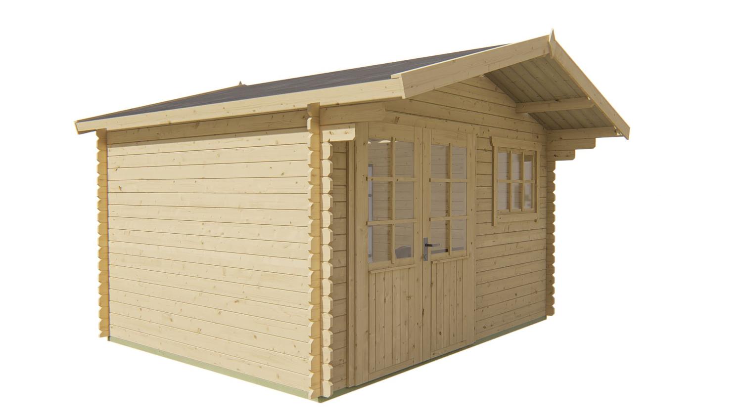 Bjælkehytte Minimoderne - Ubehandlet 300x200x223 cm med 28 mm