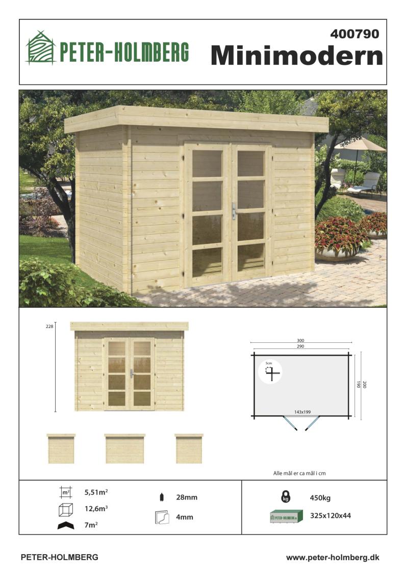 Havehus 28 mm Gran – 362 x 242 cm – 8,8 m² – Ubehandlet træhus med dobbeltdør PETER-HOLMBERG
