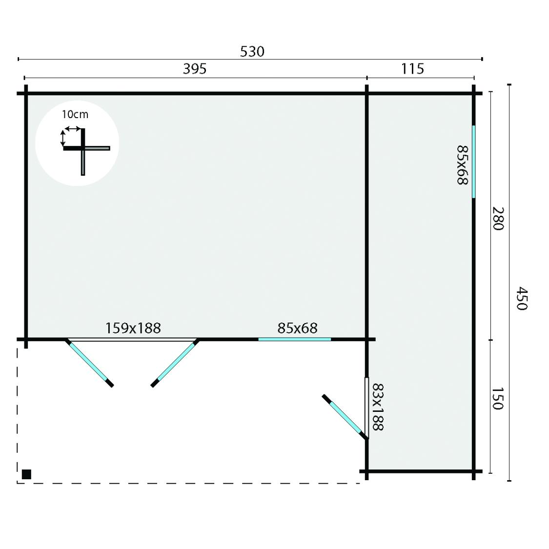 Bjælkehytte - Havehus 558 x 430 cm Dianne 40 mm