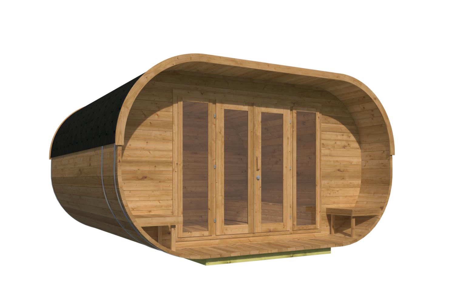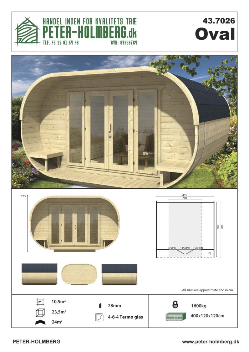 Havehus 28 mm Gran – 362 x 242 cm – 8,8 m² – Ubehandlet træhus med dobbeltdør PETER-HOLMBERG