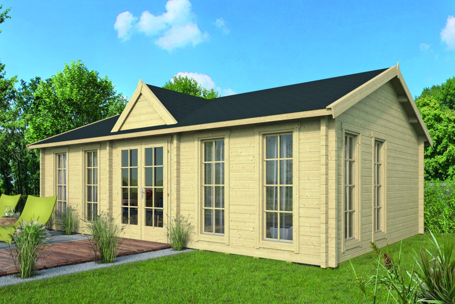 Hytte / Gæstehus Big Ben 70 mm Med PVC Vinduer & Døre 550 x 400 cm