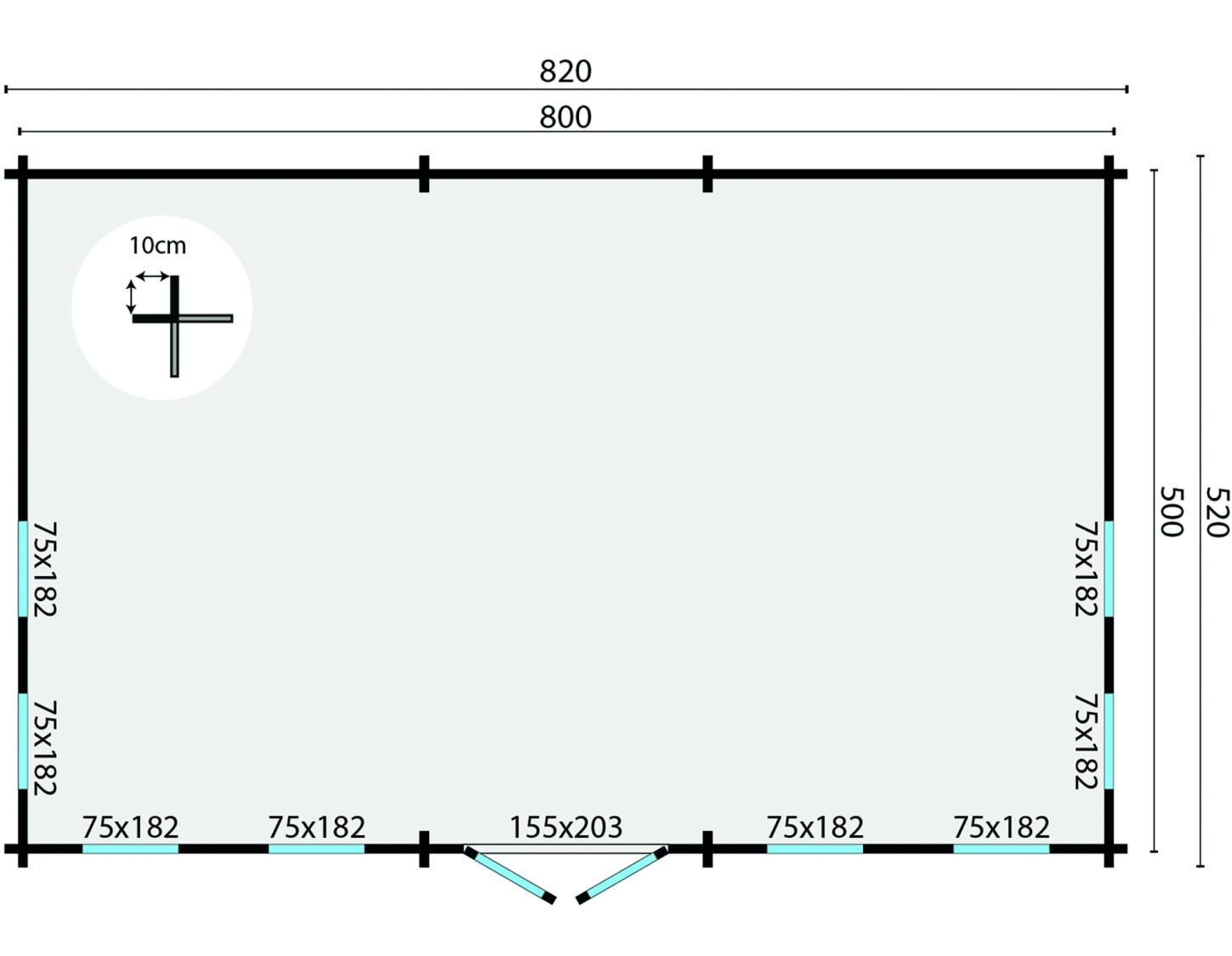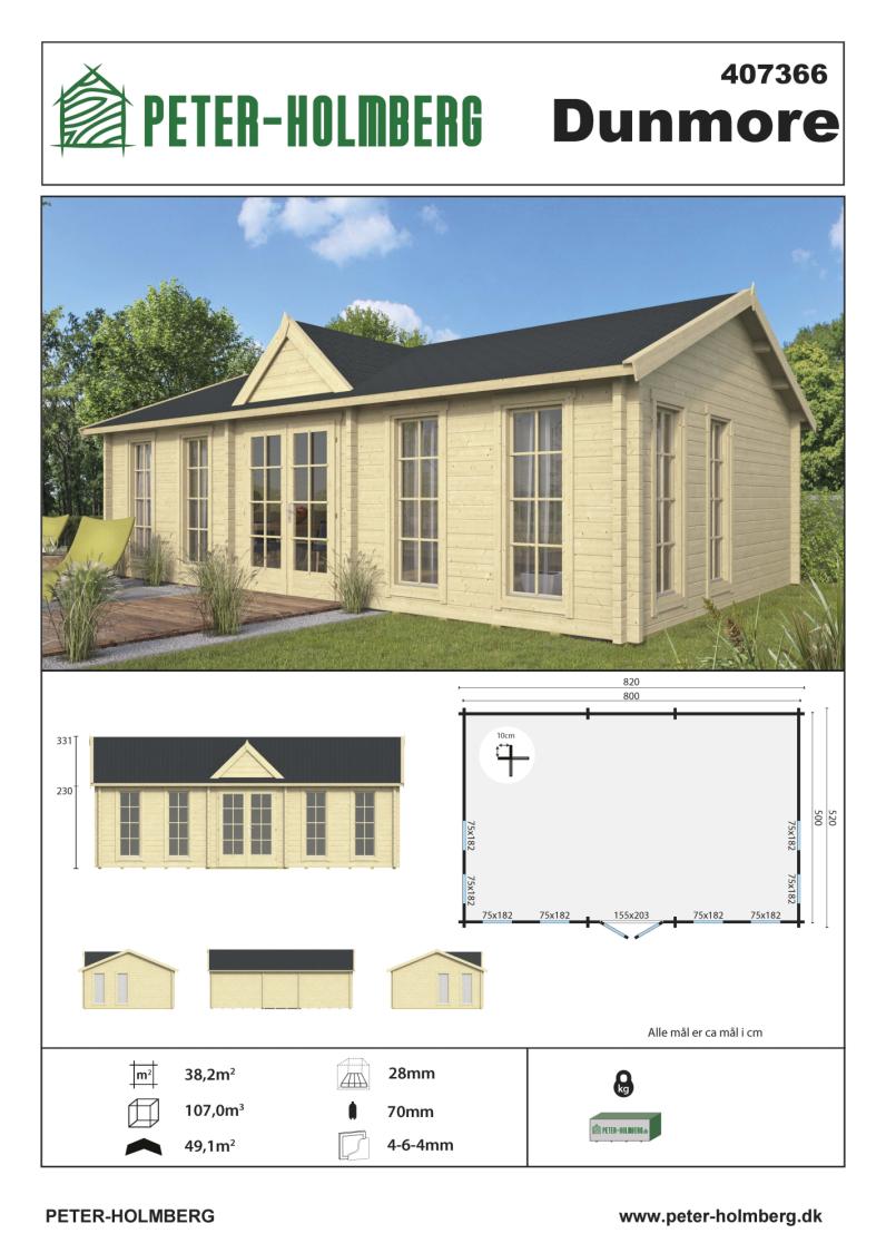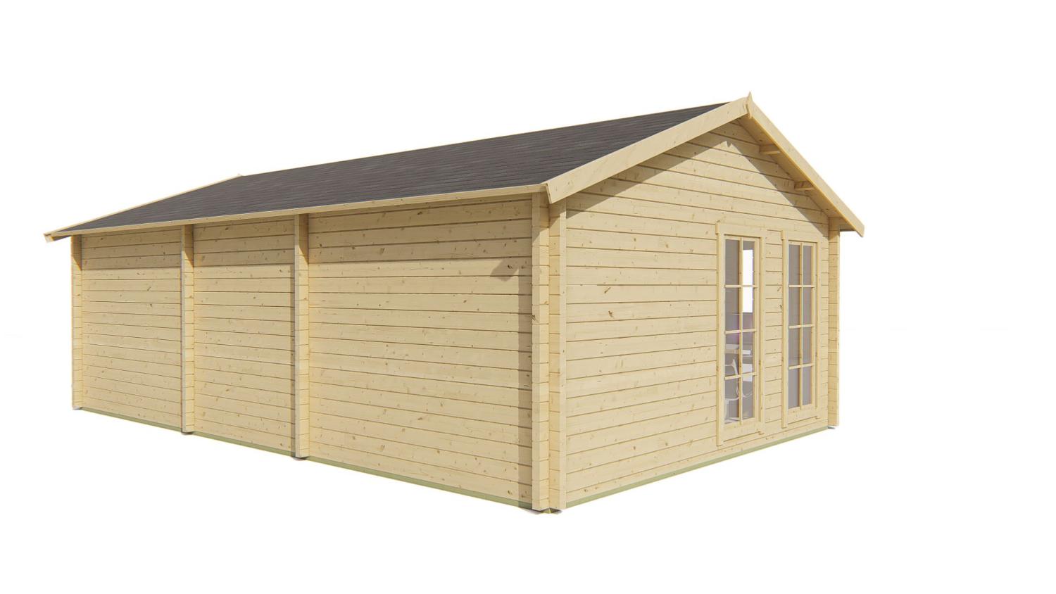 Hytte / Gæstehus Rune 70 mm 595x795x277 cm MED PVC VINDUER OG DØRE