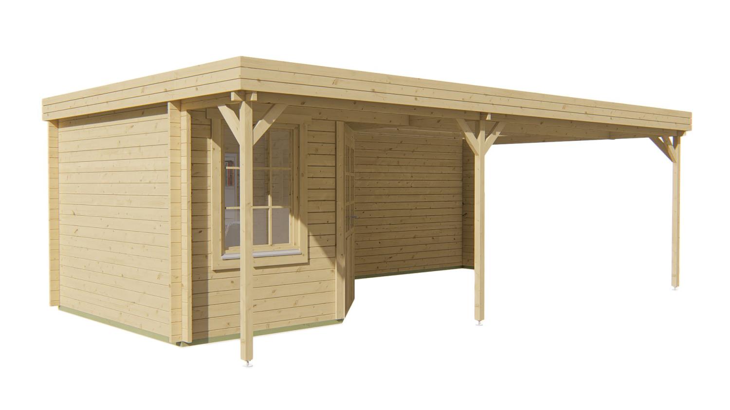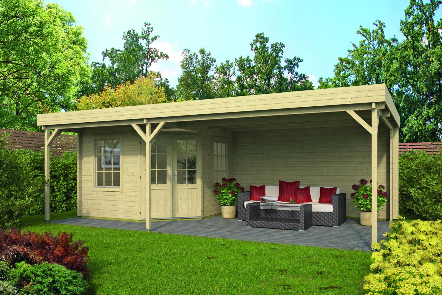 Bjælkehytte Sachsen 598x500x290cm 44 mm med veranda
