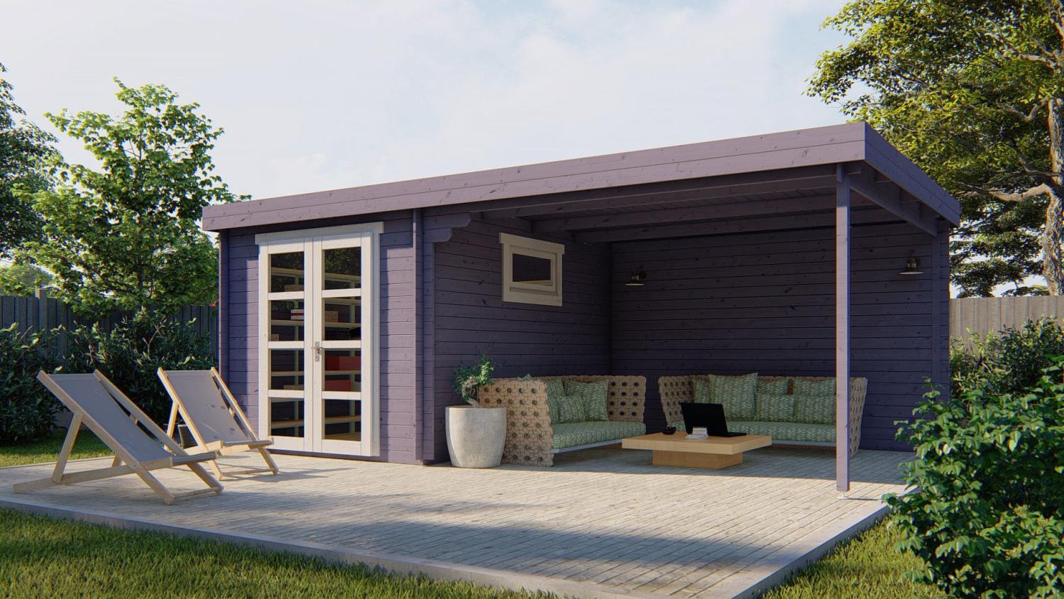 Gæstehus / hytte med overbygget terrasse Kennet 28 mm 300 x 500 cm