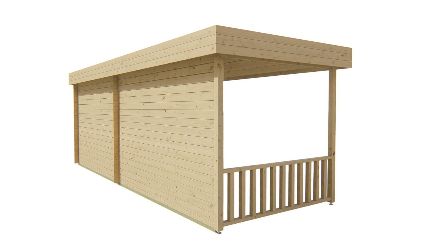 Gæstehus / Hytte med overbygget terrasse Maja 28 mm 640x240x228 cm
