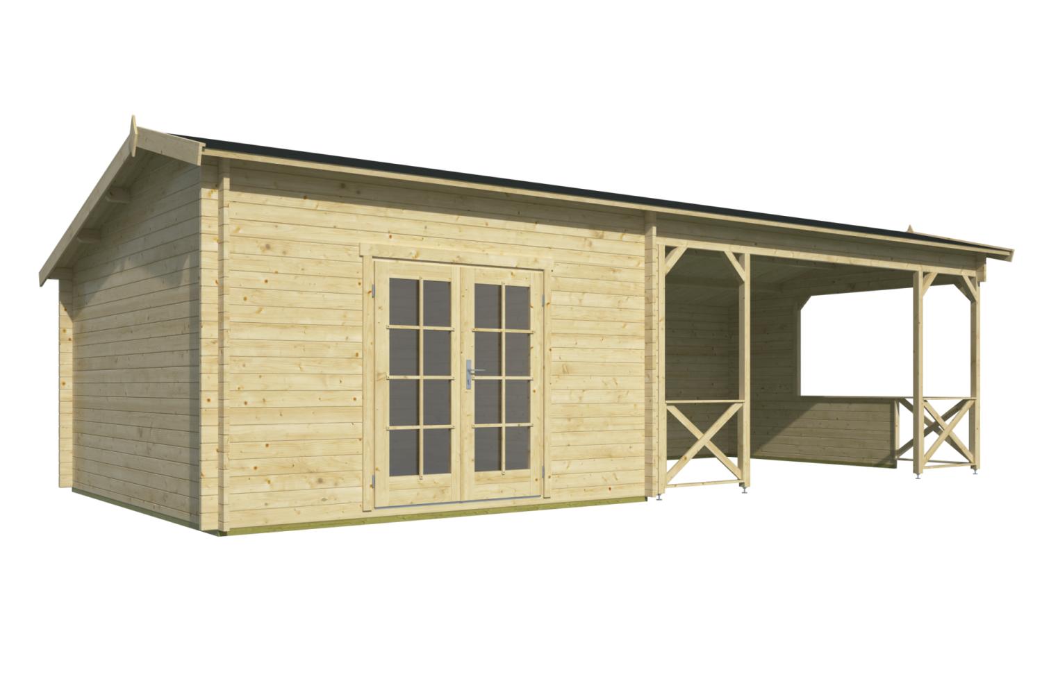 Bjælkehytte Sachsen 598x500x290cm 44 mm med veranda