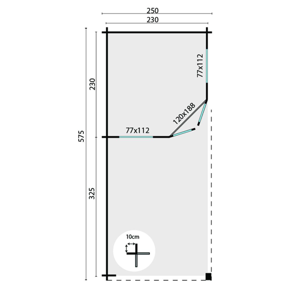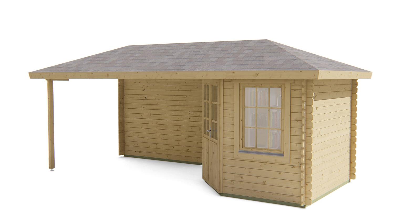 Gæstehus / hytte med overbygget terrasse Niklas 28 mm 5,75 x 2.5 m