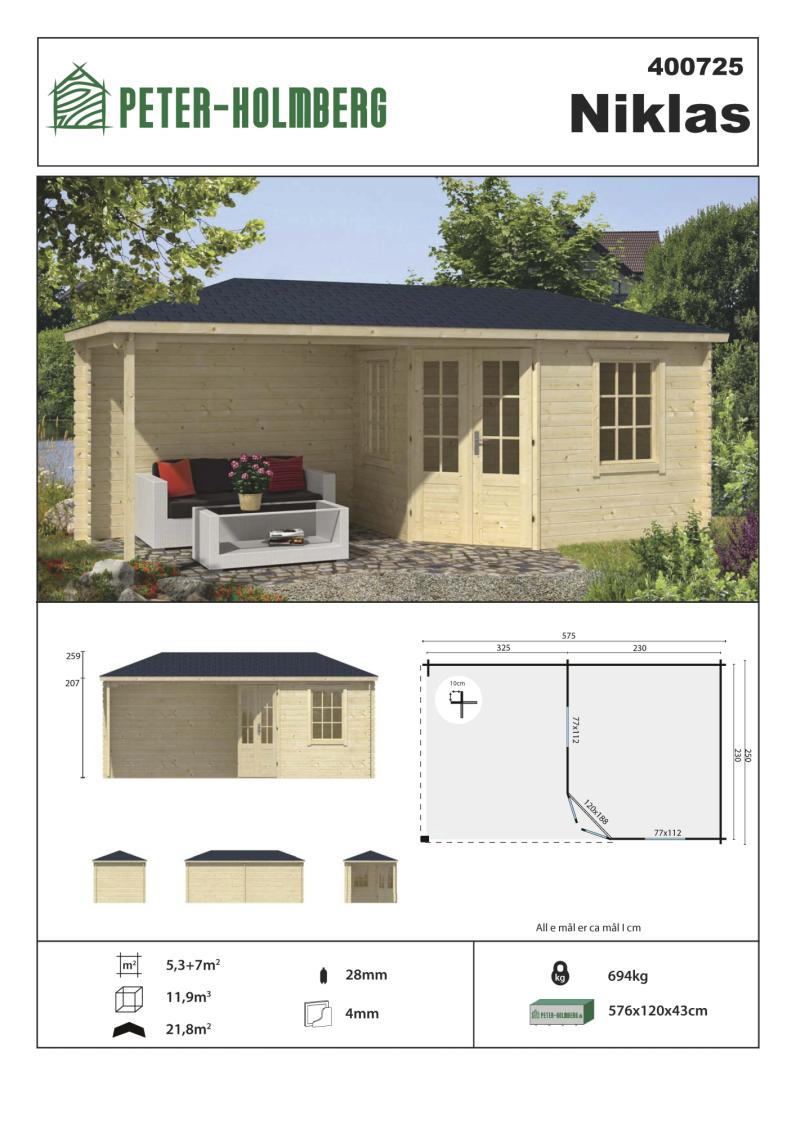 Bjælkehytte Jason havehus 40 mm 10,6 m2 PETER-HOLMBERG