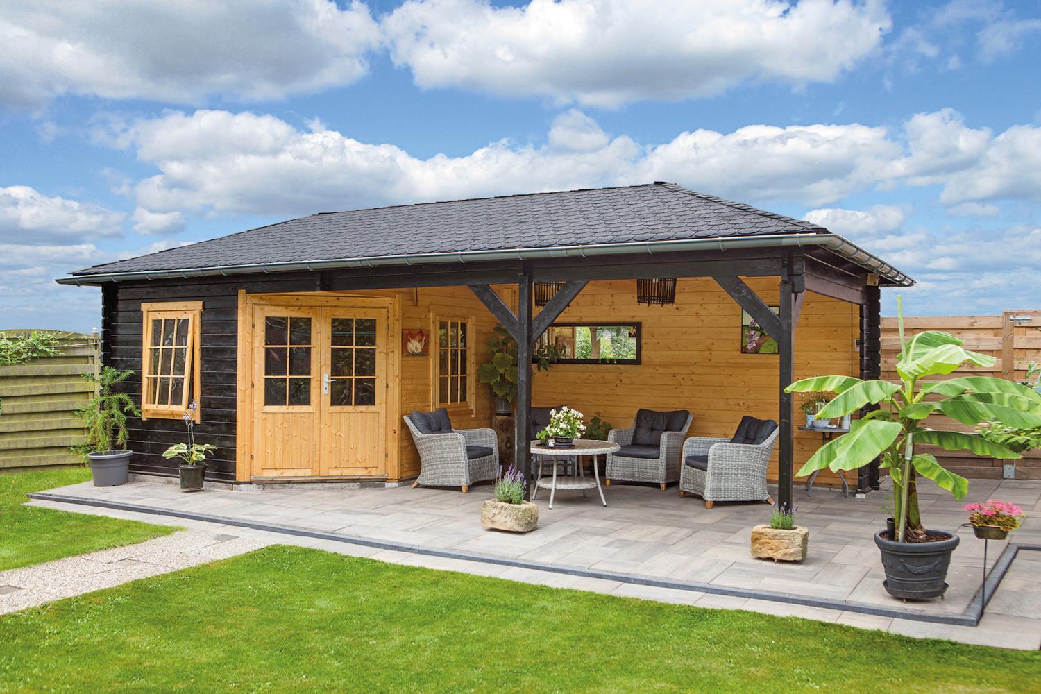 Gæstehus / hytte med overbygget terrasse Paiva 44 mm 50 + 450x350cm