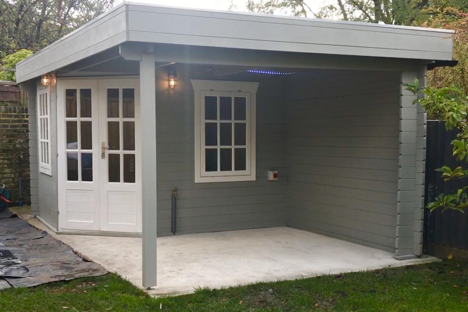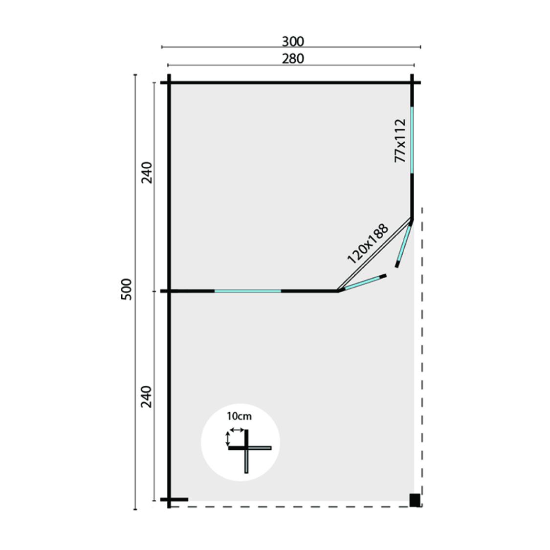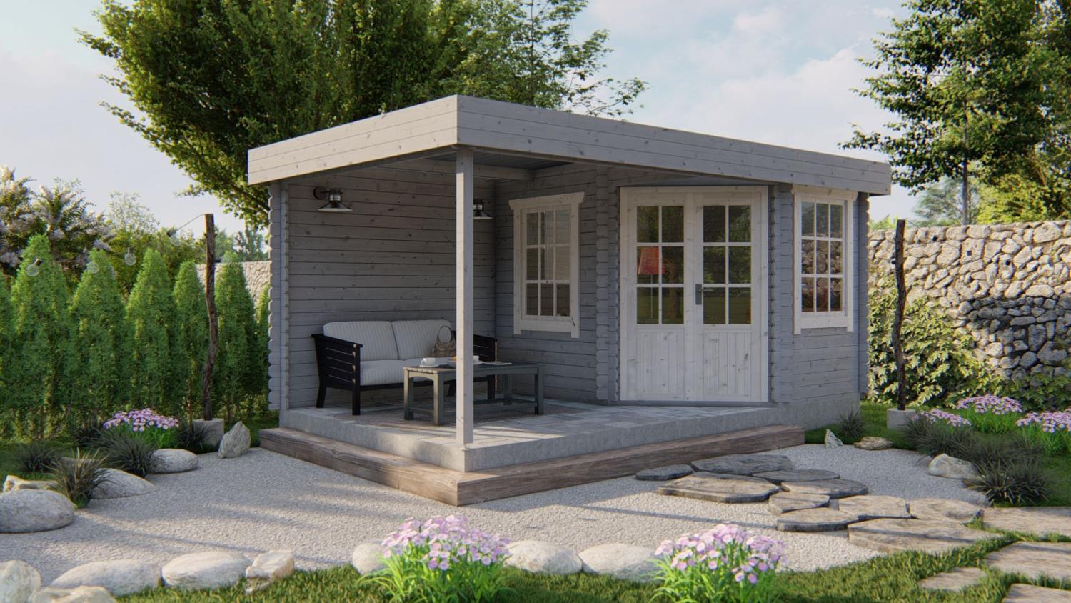 Gæstehus / hytte med overbygget terrasse Stig 28 mm 500 x 300 cm