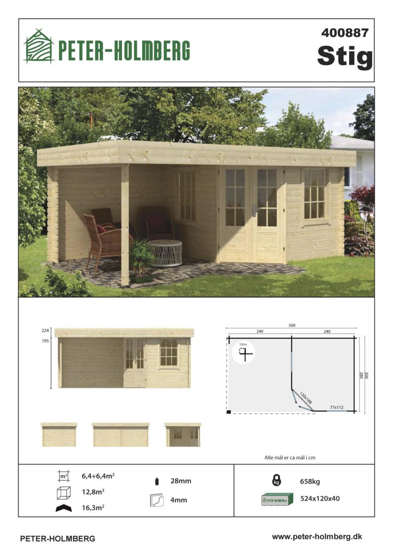 Bjælkehytte Jason havehus 40 mm 10,6 m2 PETER-HOLMBERG