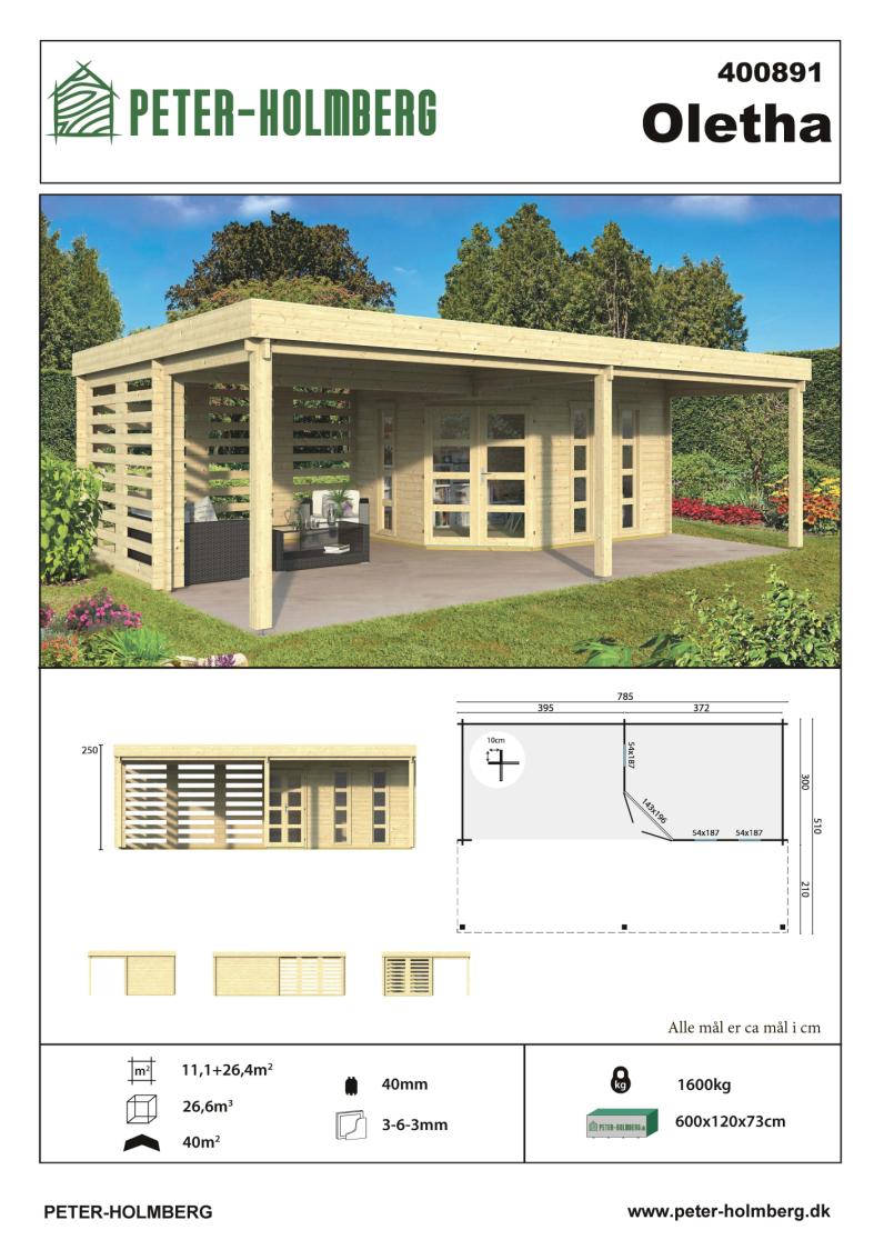 Gæstehus / hytte Oletha 40 mm 785 x 510 cm