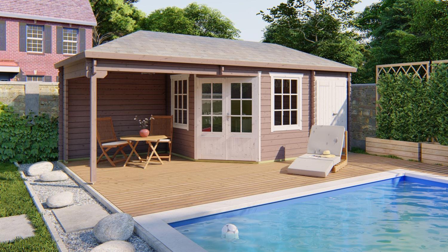 Gæstehus / poolhus med overbygget terrasse Olson 44 mm 705x300x292cm