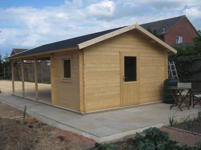 En meget betydelig og praktisk carport. Bjælke Carport Ever. Lavet ved hjælp af 45 mm vægbjælker og termoglas, med et integreret opbevaringsskur.