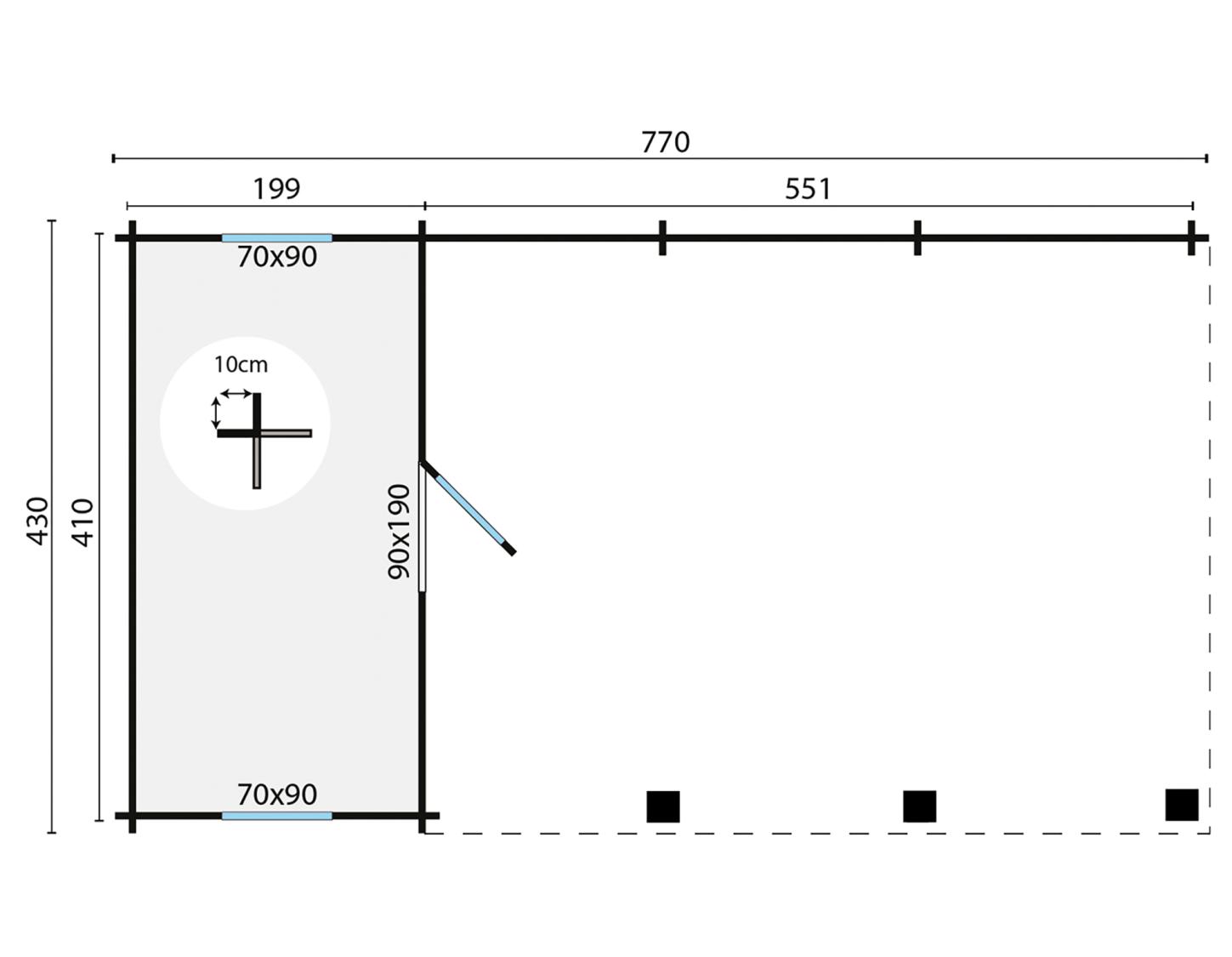 Garage | 44 mm vægbjælker | ubehandlet 340 x 520 cm