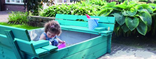 Sandkasse fire kantet med Bænk låg