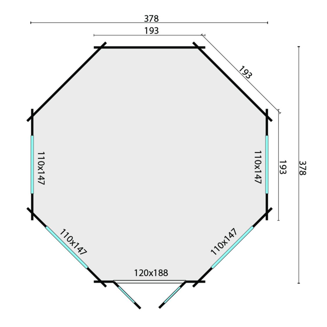 Byg selv pavillon Vinduer passer til alle vægsider, Døre og vindues sprosser medsendes løsei ubehandlet gran træ, Alle hytter kan spejlvendes