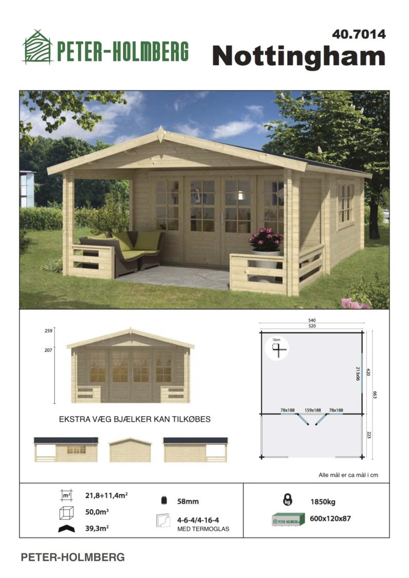 Hytte / Gæstehus Med overdækket terrasse Nottingham 58 mm 540x663x276cm