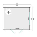 Havehus 28 mm Gran – 362 x 242 cm – 8,8 m² – Ubehandlet træhus med dobbeltdør PETER-HOLMBERG