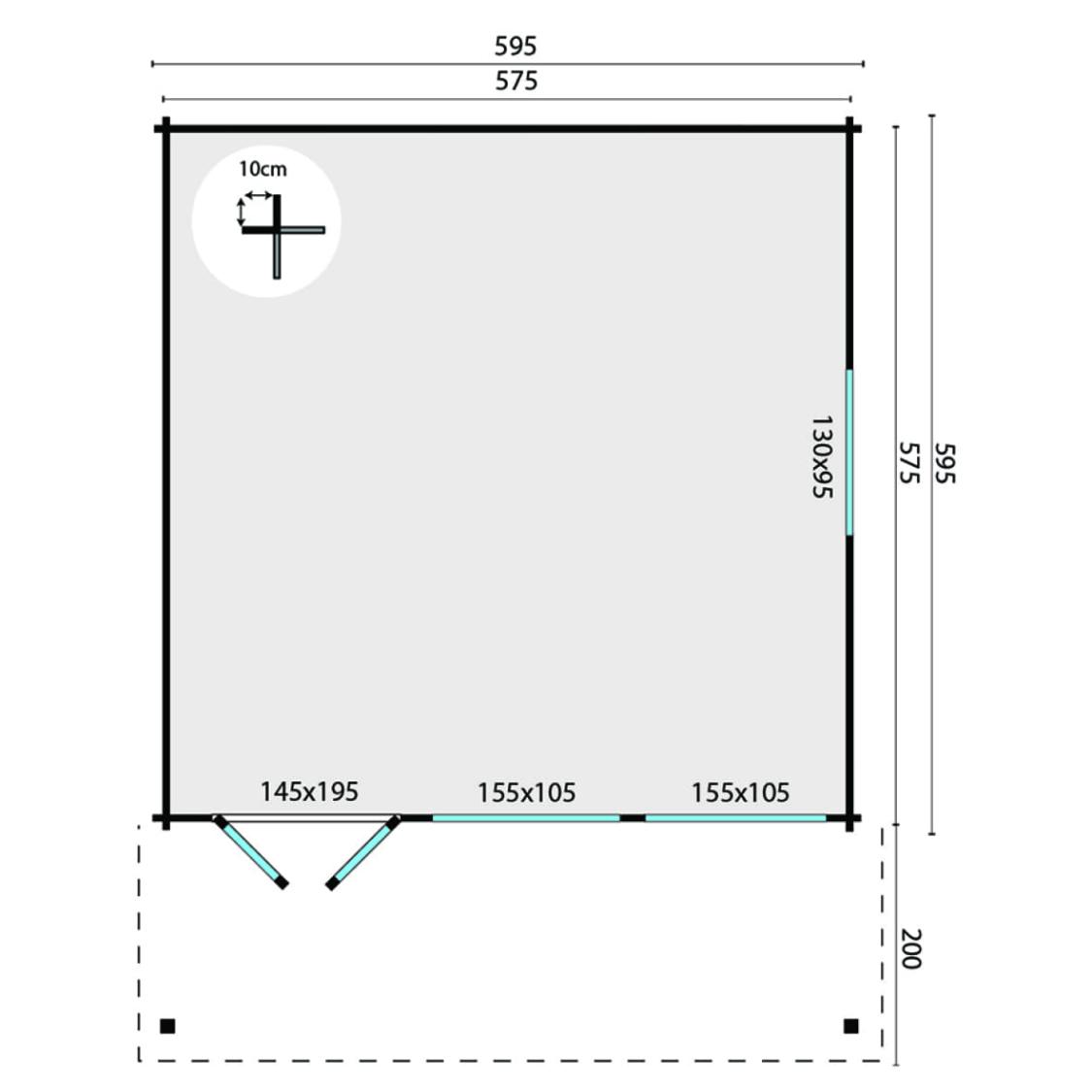 Hytte / Gæstehus / sommerhus Rune 70 mm 5,95 m x 5,95 m