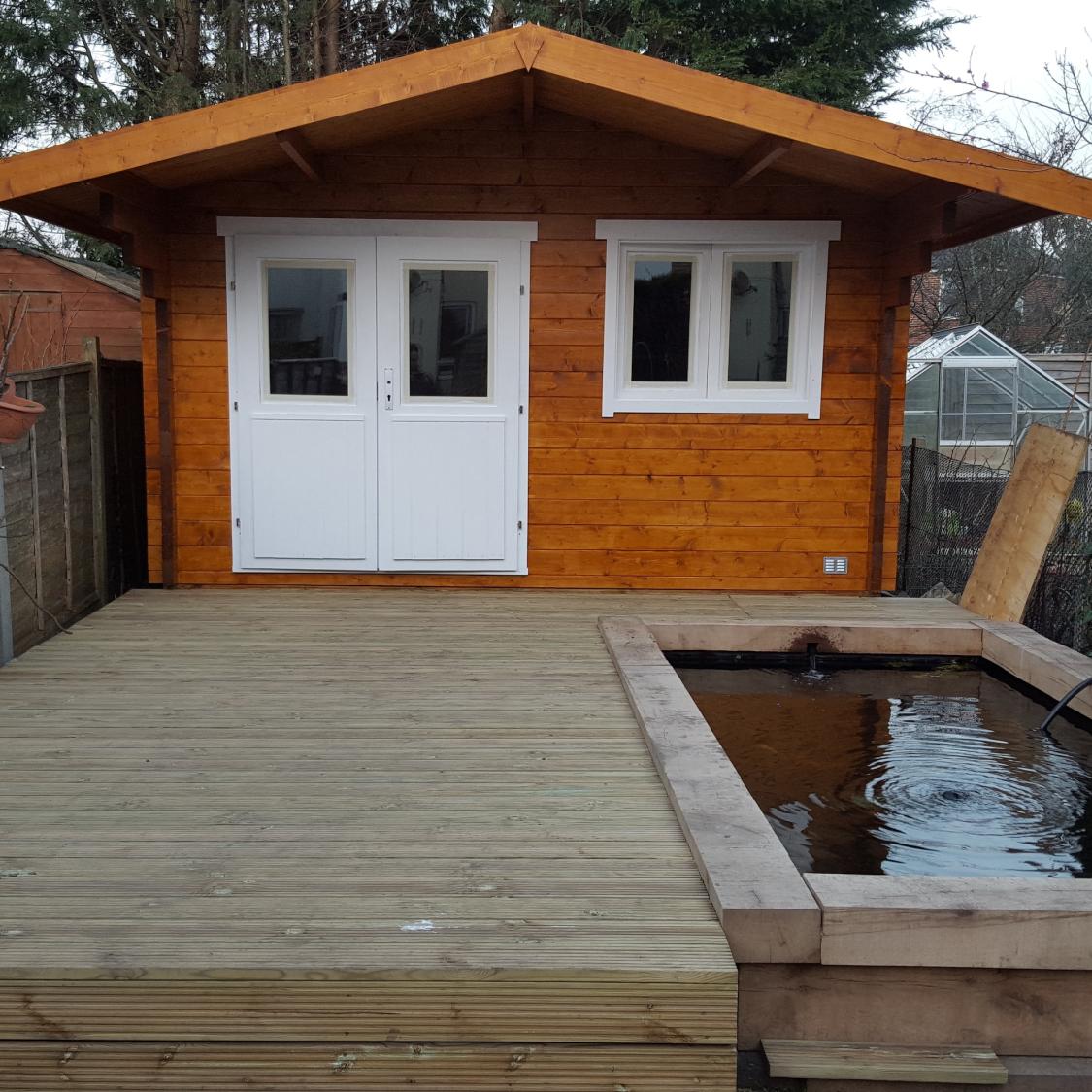 Hytte / Gæstehus Med overdækket terrasse og ekstern udhus Manchester 58 mm 594 x 663 cm