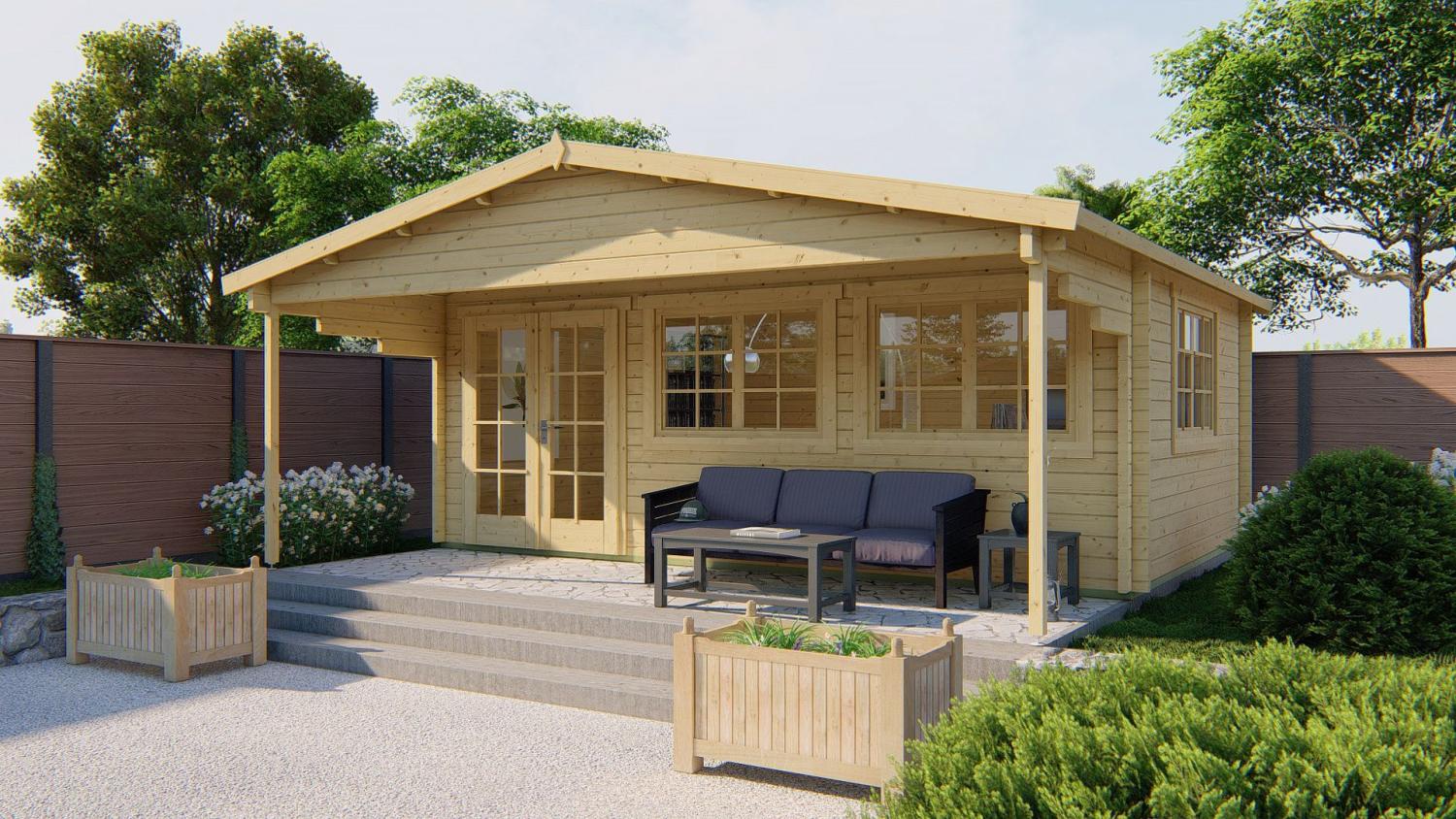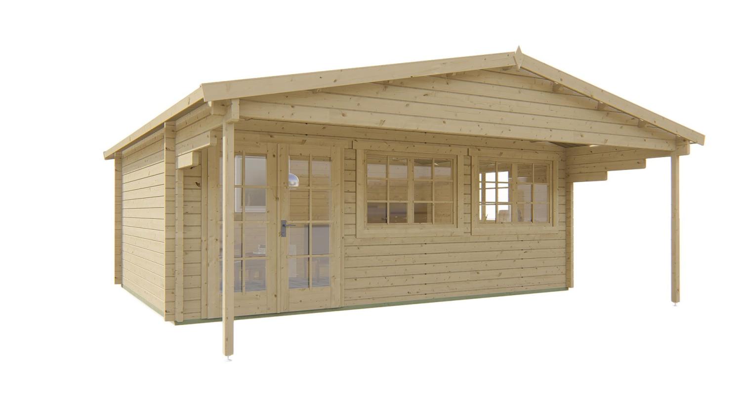 Bjælkehytte Sachsen 598x500x290cm 44 mm med veranda