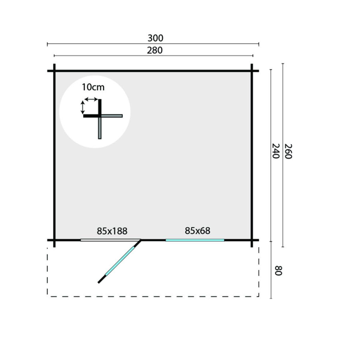 Hytte / Havehus Bjørn 28 mm 300 x 260 x 245 cm med Udhæng 80 cm