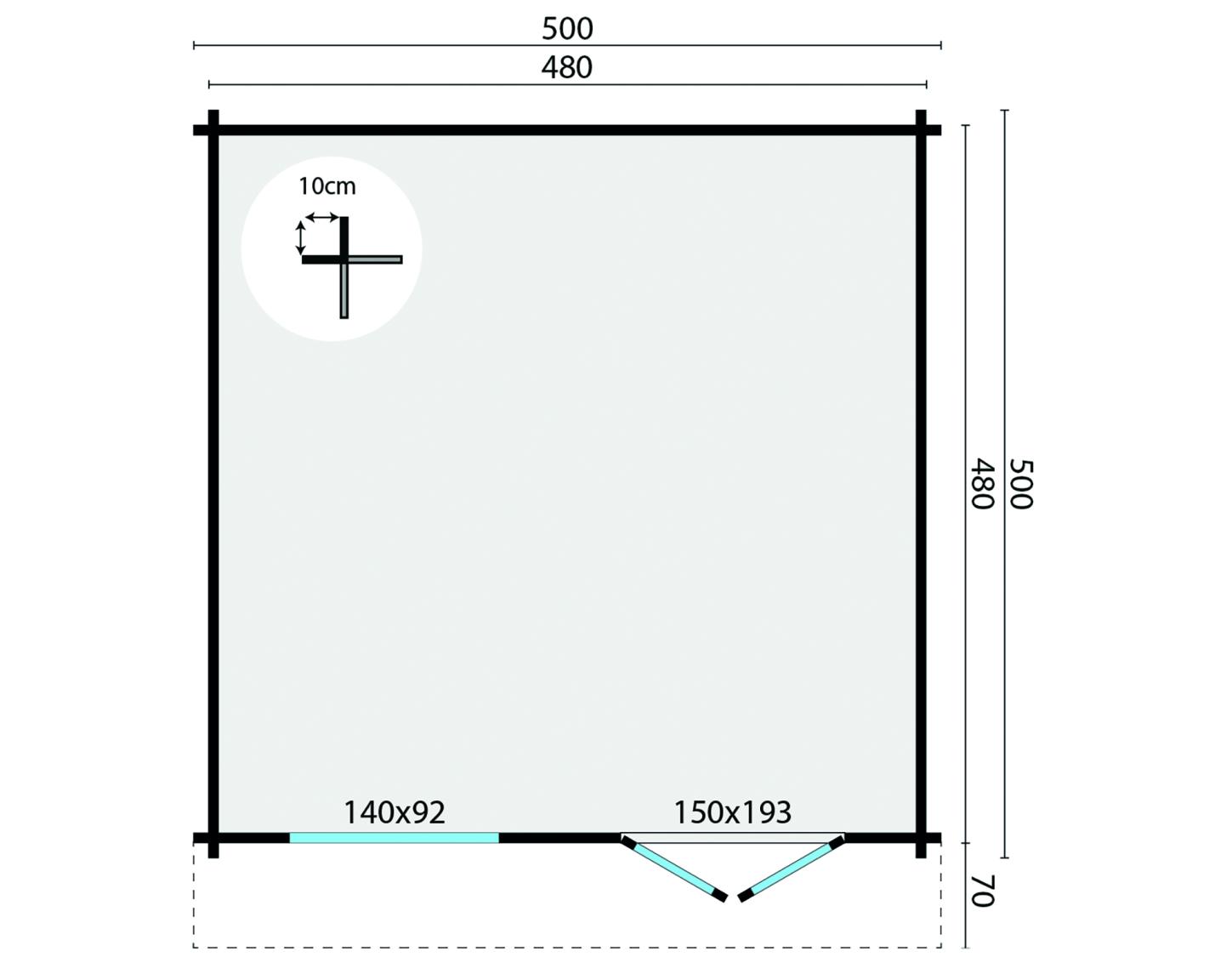Hytte / Havehus / Kontor. Model Dingler 70 mm 500x500x250 cm Med PVC Vinduer og Døre