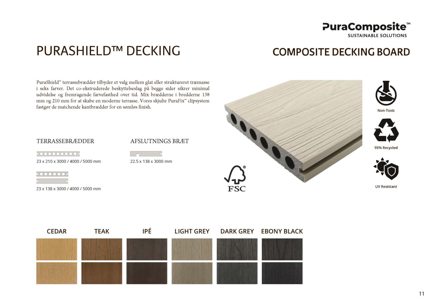 Komposit Terrassebræt 23 × 210 mm – CEDER Halvmassiv   | FSC | Klipsesystem, halvmassiv, Flere Varianter