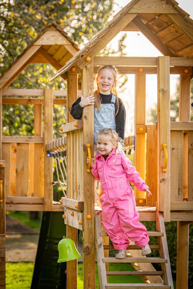 Legetårn i Douglas træ Platformshøjde: 150 cm (kan tilpasses til 120 cm) Høvlet og ubehandlet træ Jordankre og håndtag inkluderet Klar til udvidelse med rutsjebane Perfekt til privat have