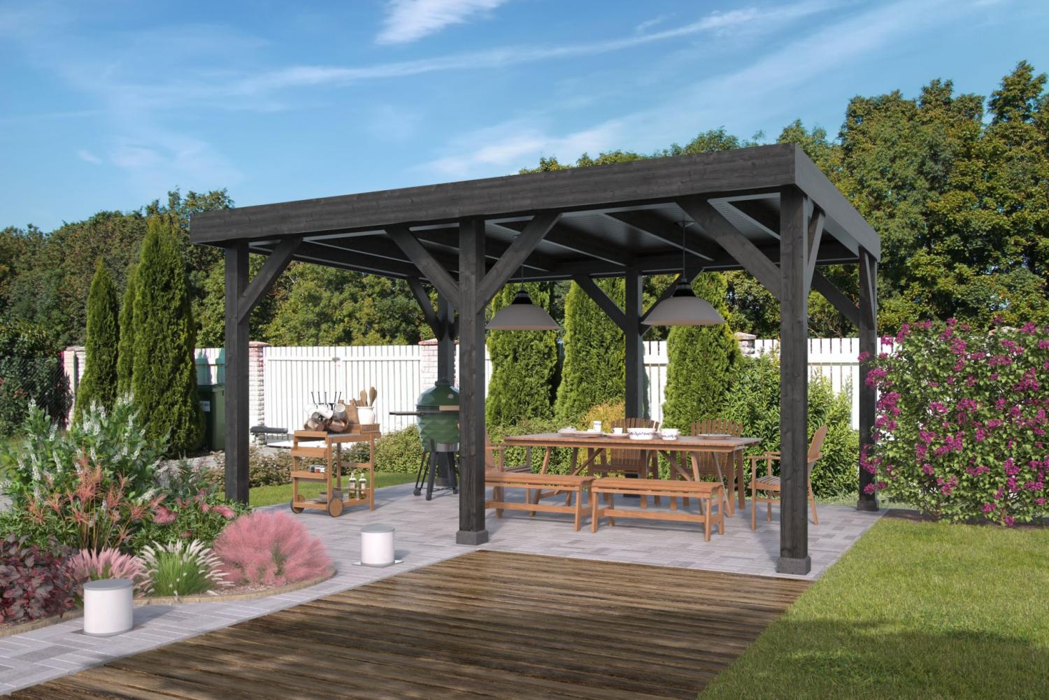 Byg din egen pergola i sort imprægneret Douglas med fladt tag