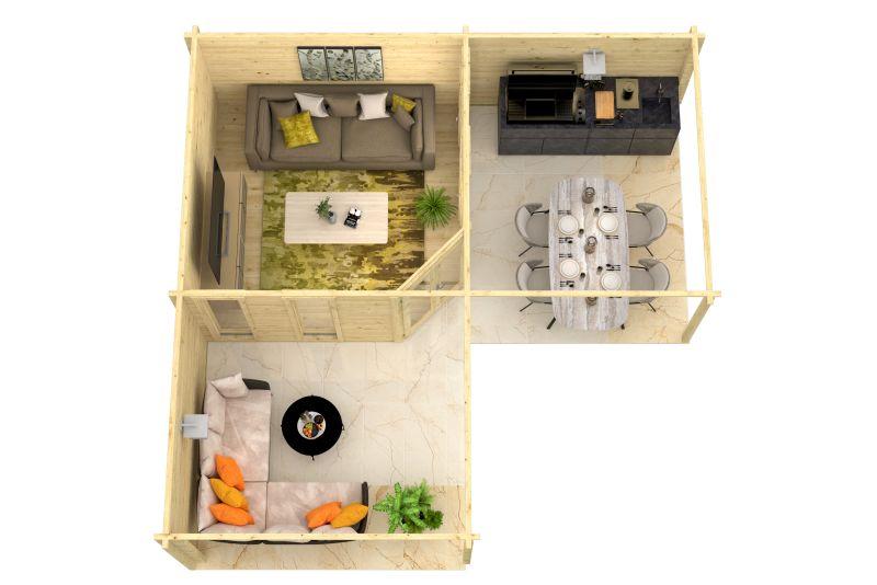 Bjælkehytte Palma – 44 mm – 34 m² – Ubehandlet gran