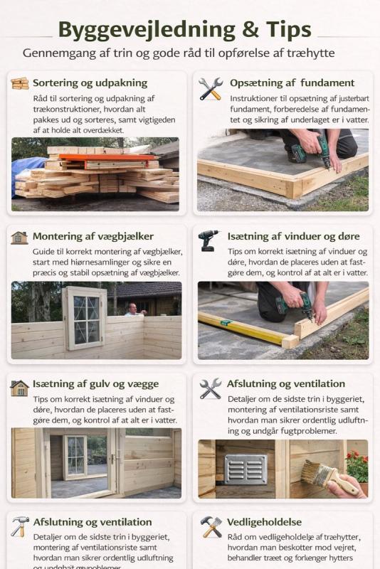 Vi har sammensat en quick byggevejledning til montering af en hytte