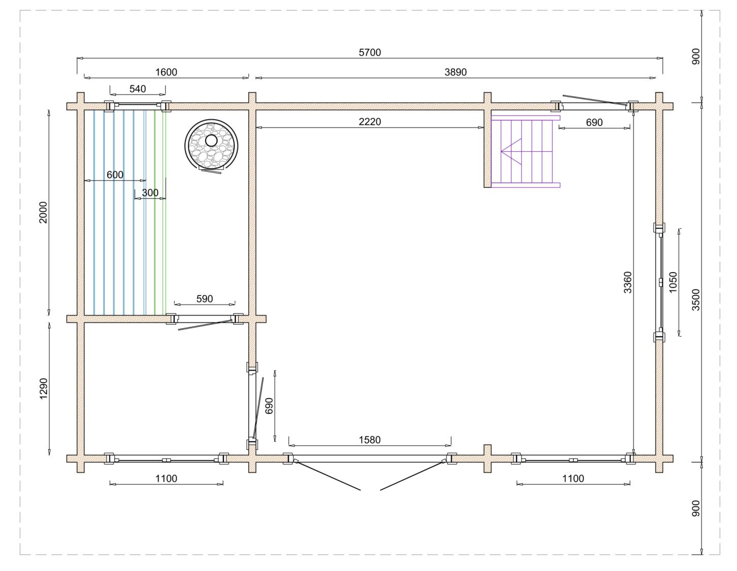 Sauna / Camping Hytte 70 mm 570 x 350 cm