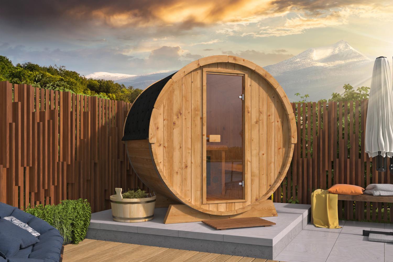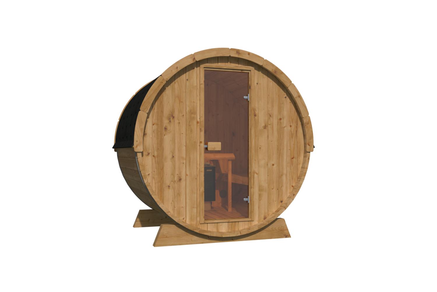Saunatønde med Glasdør – Ø205 x 160 cm | 42 mm Termotræ