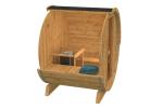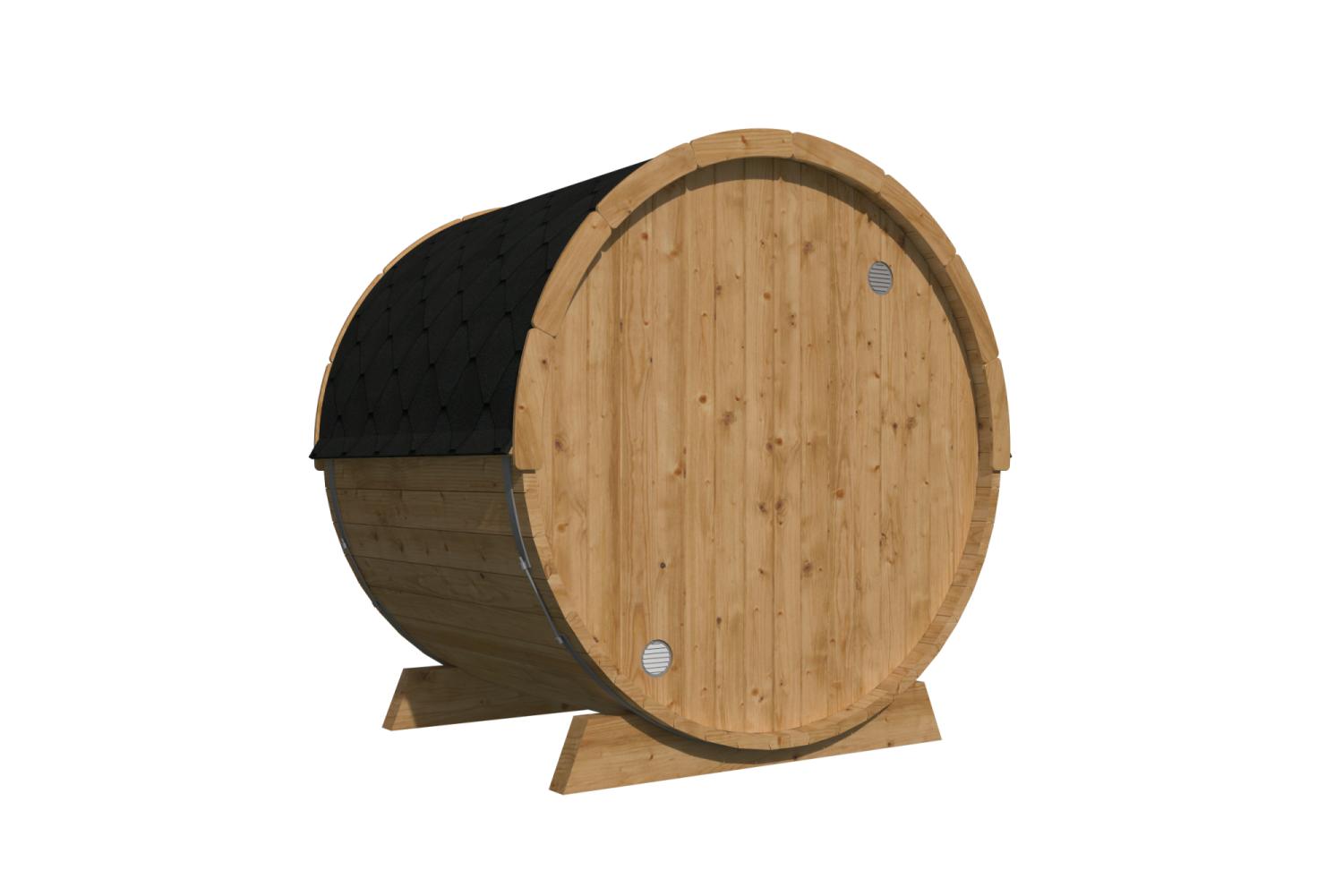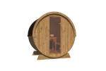Kompakt Thermowood saunatønde Ø205 x 160 cm med glasdør. Fremstillet i termobehandlet træ for lang holdbarhed. Inkl. tagshingles, saunabænk og byggekit. Klar til el- eller brændefyret ovn (tilkøb).