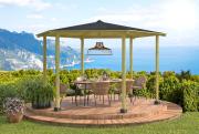 Perfekt til den mindre have, dette attraktive sekskantede lysthus er kendetegnet ved gitterdetaljer