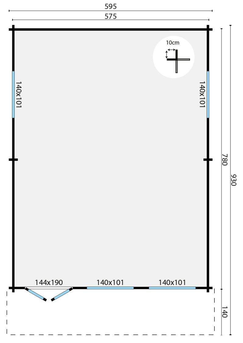 Sommerhus / Hytte Kay 70 mm 5,95 m x 8,0 m Med PVC Vinduer & Døre