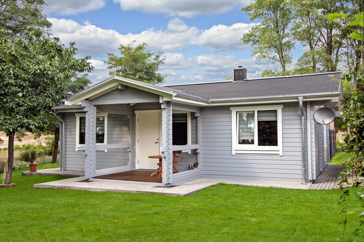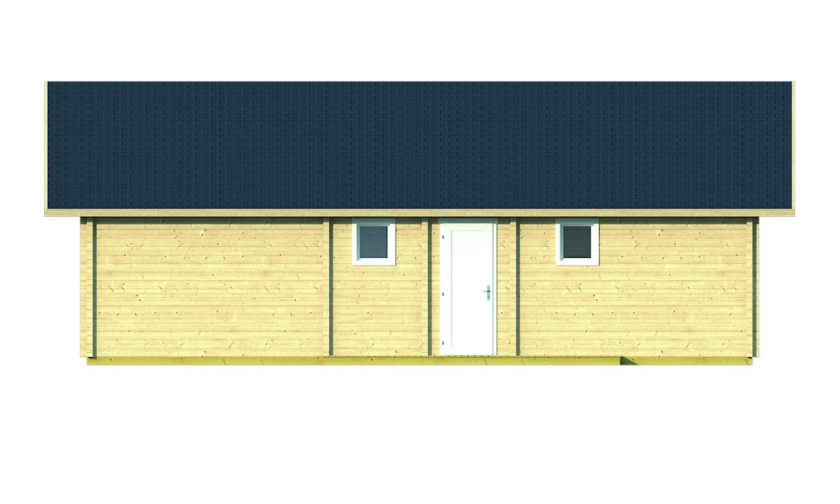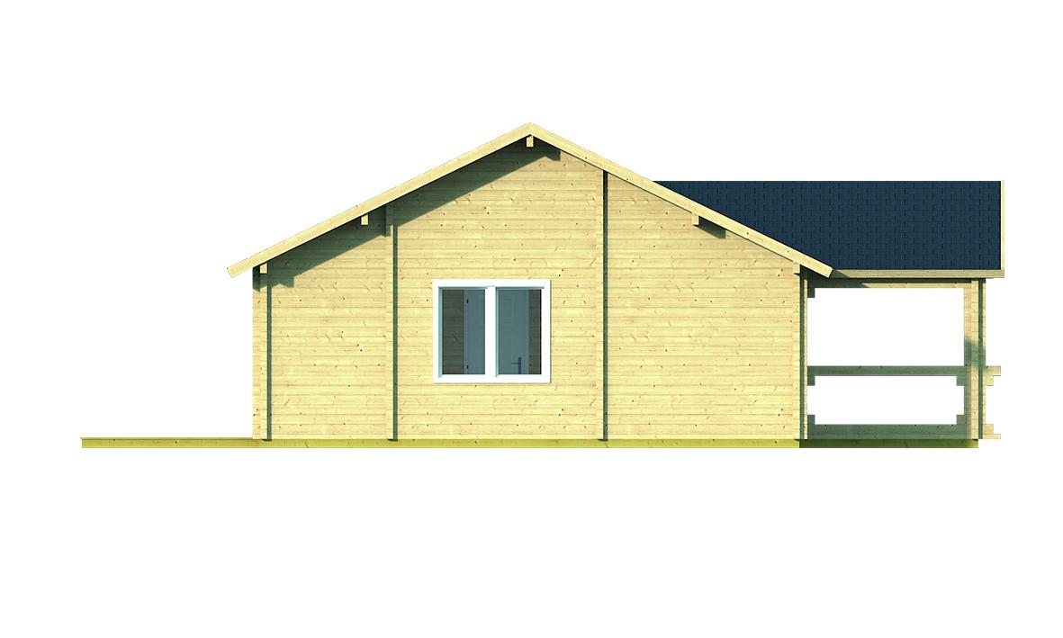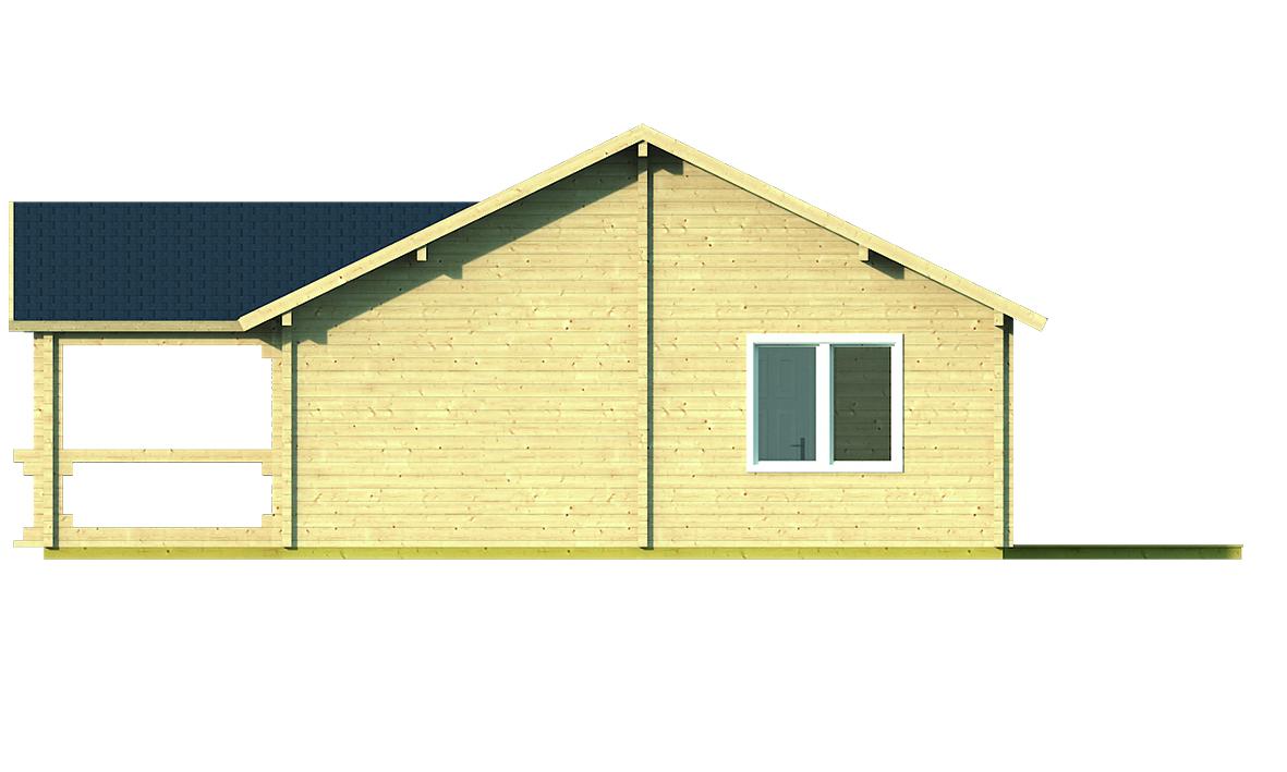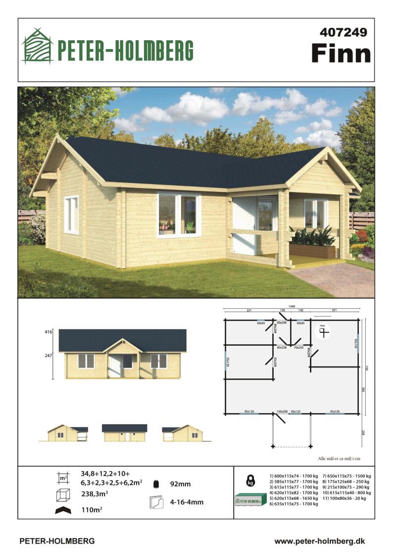 Sommerhus/hytte FINN i 92 mm fuldtømmer. 1040 x 760 + 238 cm. 74,3 m² totalareal, isoleringsglas, dobbelt tag, PVC eller trævinduer og -døre.(Standard Træ) Eksklusiv kvalitet til helårsbrug eller fritid. Pris.Stk.Fra