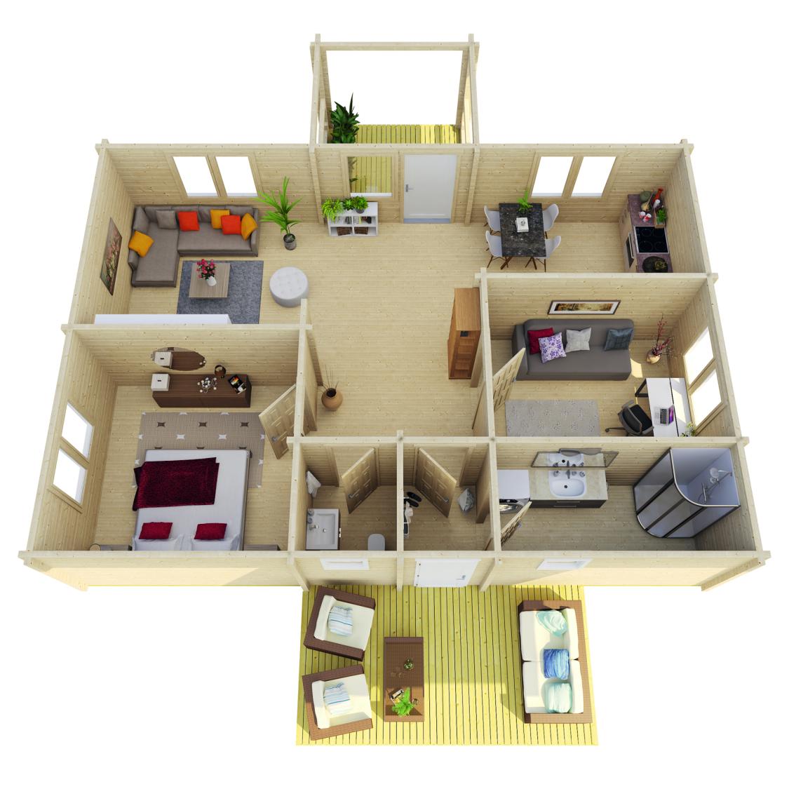 Bjælkehytte Maynooth – 70 mm – Eksklusiv L-formet bjælkehytte på 72 m² PETER-HOLMBERG
